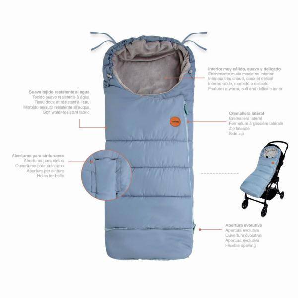 Can be used with a group 0 carrycot or stroller. Made from a soft water-resistant fabric with a warm fleece inner. Features eyelets for belts and the side zip. It is specially designed so the footmuff gets longer as the child grows. There is a zip in the foot area which allows the footmuff to be extended when required. The top can be converted into a hood. Comes with strips to attach the footmuff and prevent slippage.