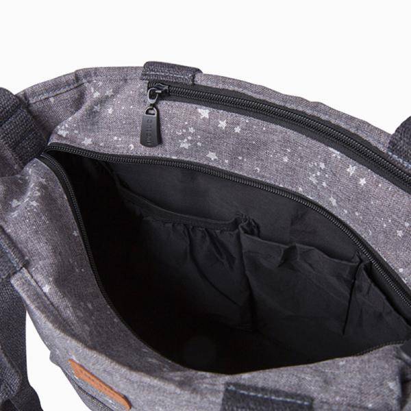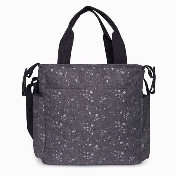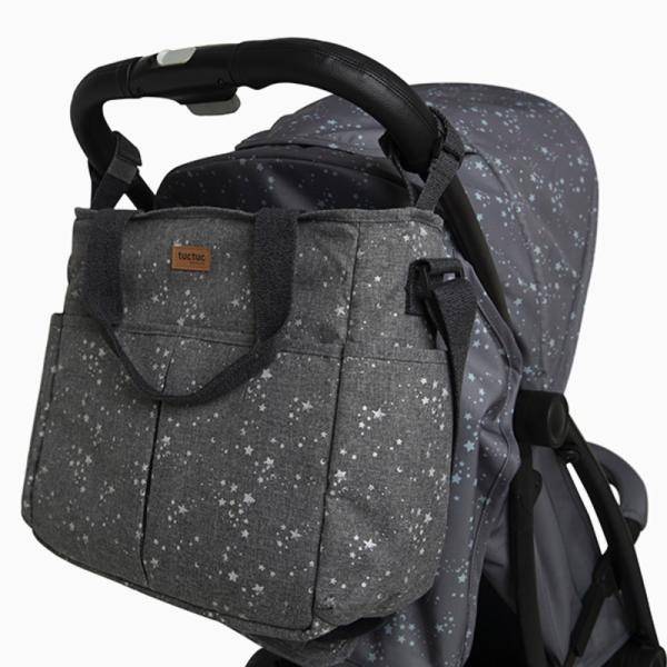 Породилна торба со подлога за пресоблекување, папка за документи, како и кратки и долги рачки за прикачување на количка.